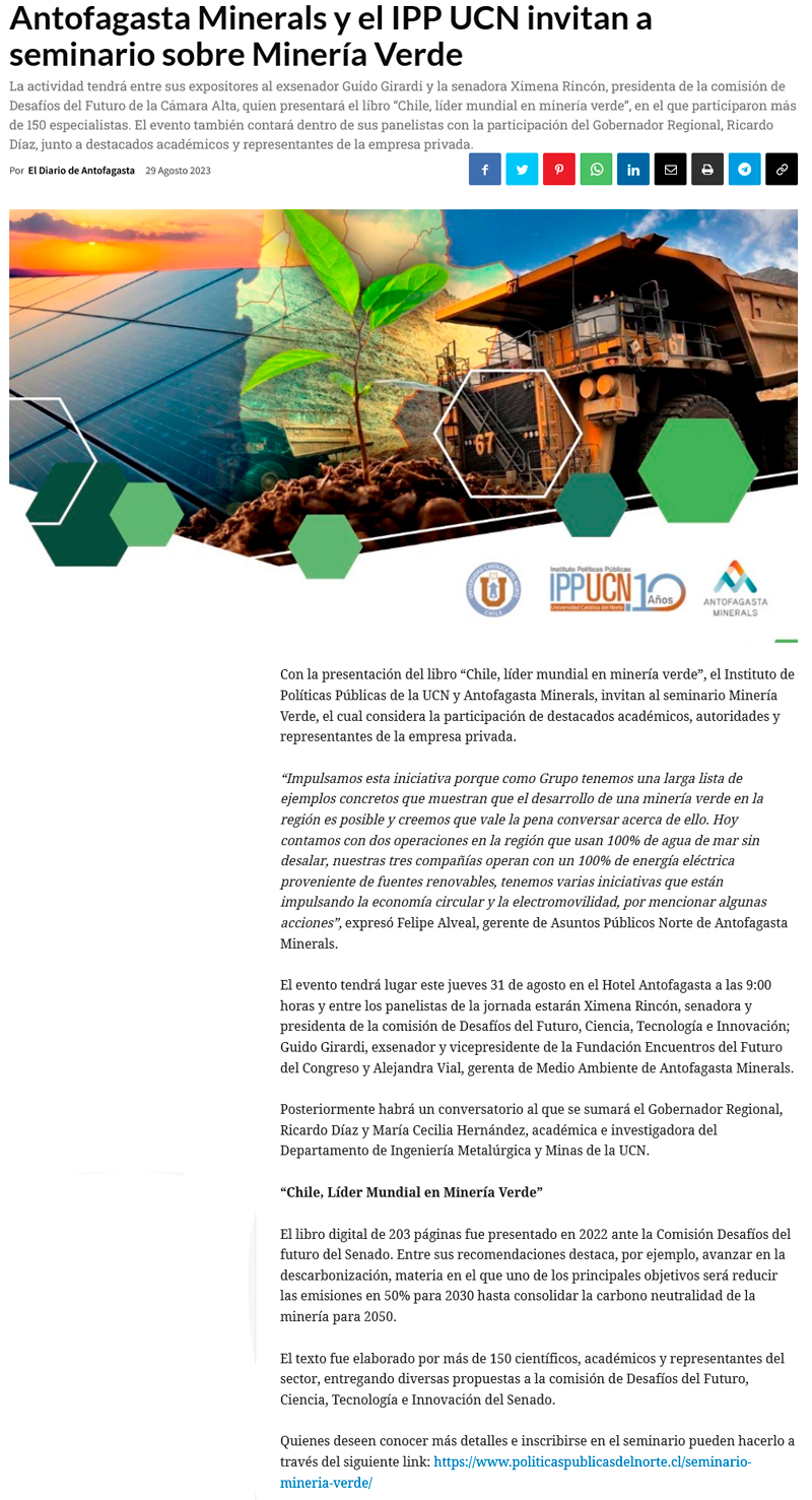 AMSA y el IPP de la UCN invitan a seminario sobre MinerĂa Verde - (El Mercurio de Calama)