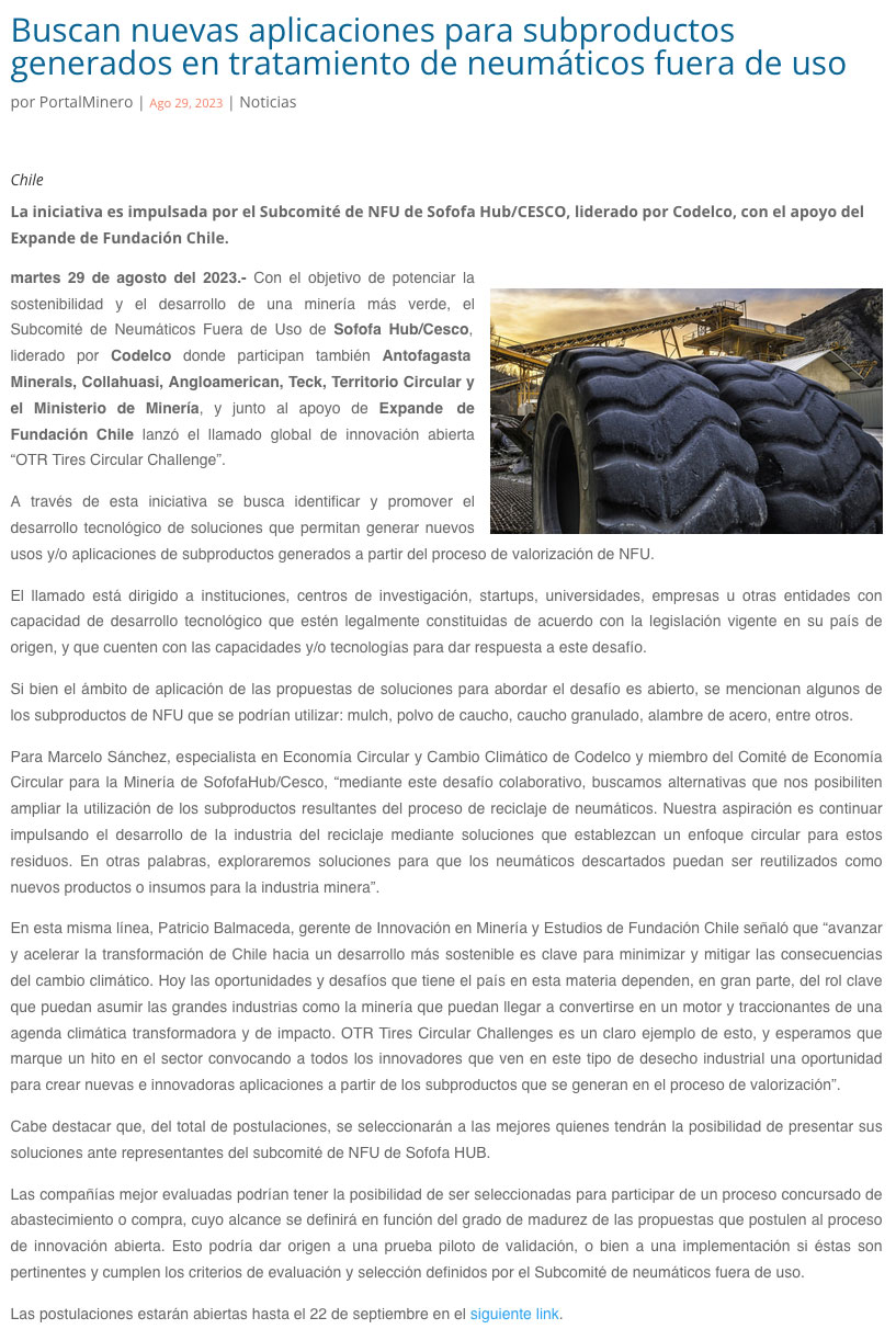 Concurso busca innovadores con soluciones sostenibles para subproductos de neumáticos fuera de uso - (emol)