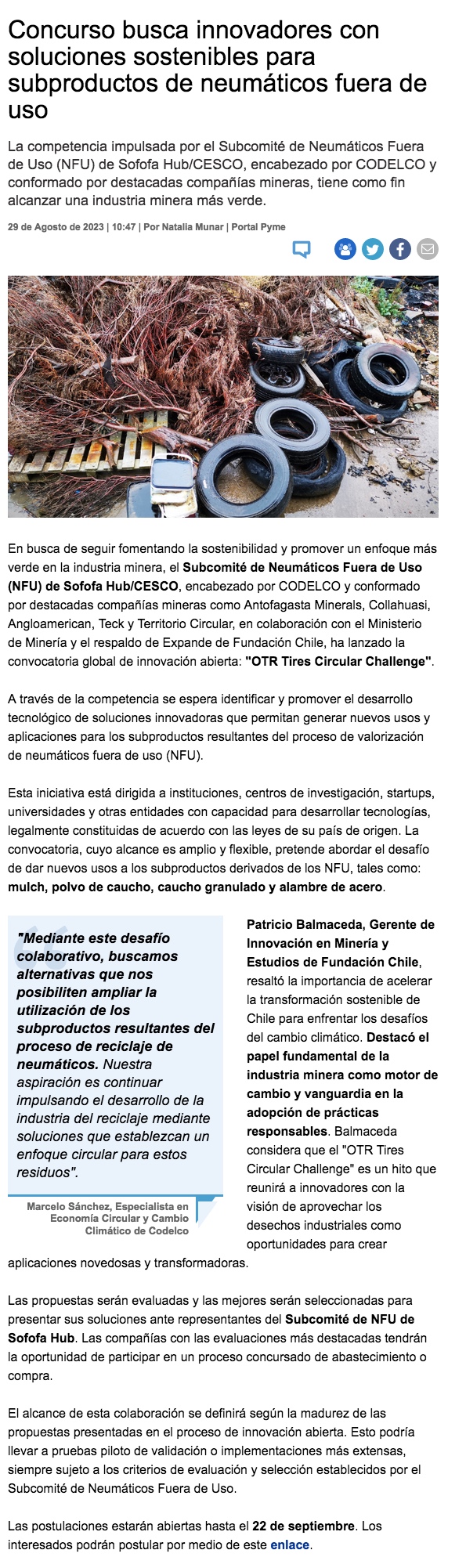 Buscan nuevas aplicaciones para subproductos generados en tratamiento de neumáticos fuera de uso - (portalminero)