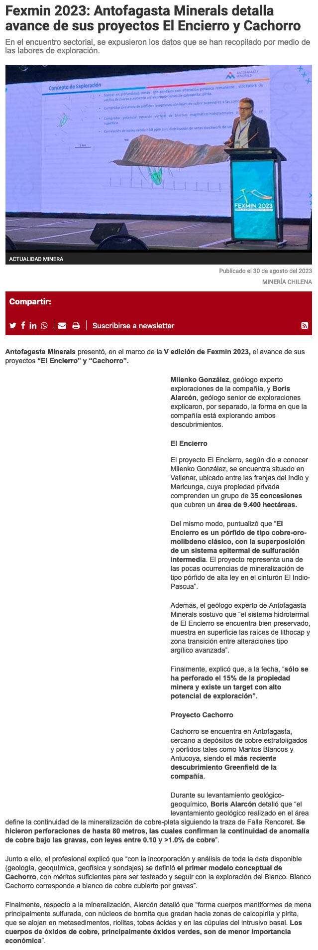 En inauguración de Fexmin 2023 se destacó la importancia de la exploración minera y la información - (portalminero)