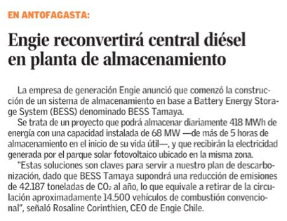Engie construirá sistema de almacenamiento con baterías en ex planta diésel en Tocopilla - (soyantofagasta)