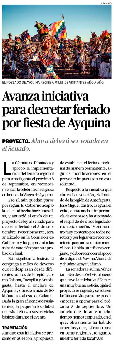 Gobierno ingresó proyecto para decretar feriado el 8 de septiembre en la región de Antofagasta: está con discusión inmediata - (timeline)