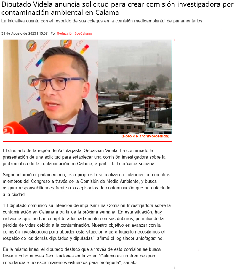Plan de descontaminación: Comprometen medidas provisorias en un plazo de tres meses - (El Mercurio de Calama)