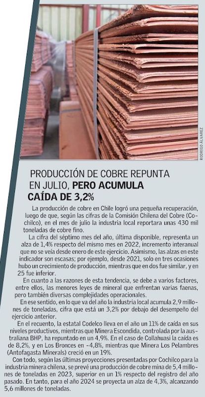 Producción de mayores minas chilenas de cobre cierra dispar en julio - (eldiariodesantiago.cl)