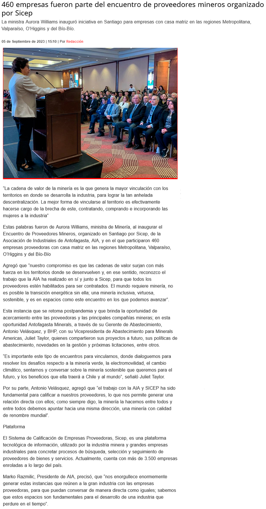 Los hitos que dejó el Encuentro de Proveedores Mineros organizado por la AIA - (mch.cl)
