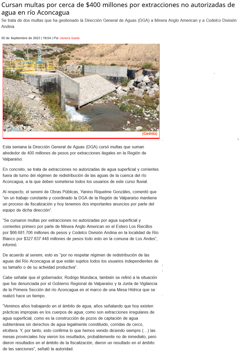 Aplican cuantiosas multas por extracción irregular de aguas - (El Mercurio de Valparaíso)