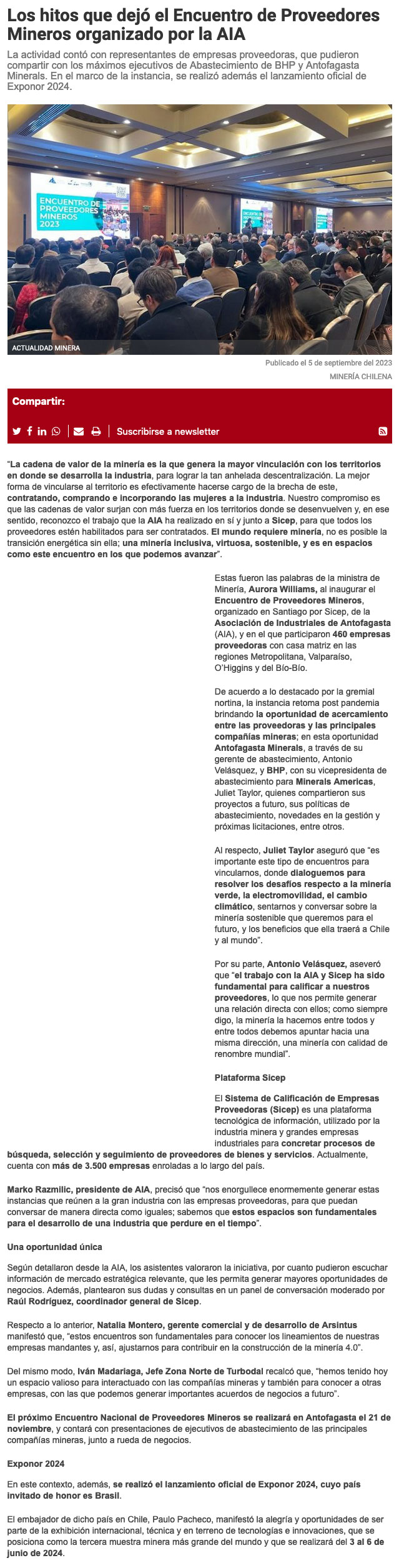 460 empresas fueron parte del Encuentro de Proveedores de la AIA - (El Mercurio de Antofagasta)