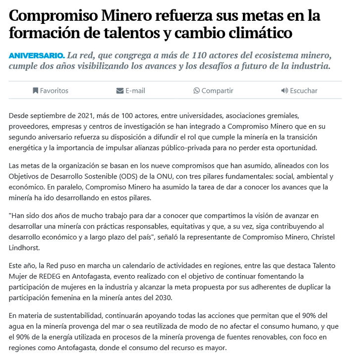 Compromiso Minero cumple dos años y refuerza sus metas en formación de talentos y cambio climático - (mch.cl)