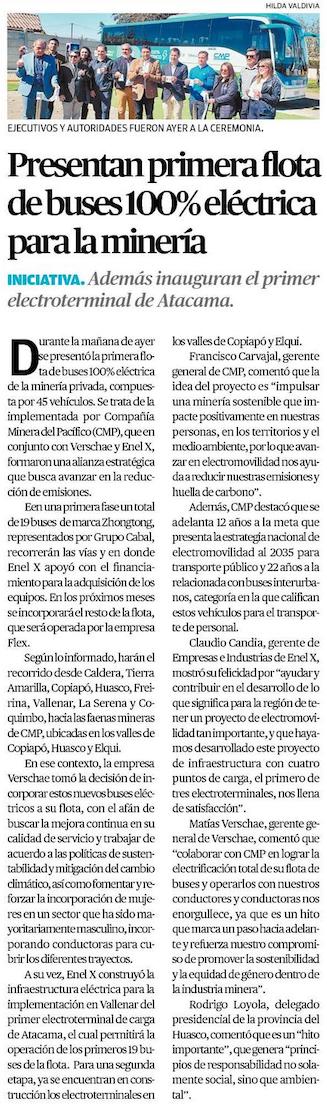 CMP Enel X, Verschae y Flex presentan la primera flota de buses 100% eléctricos para la minería - (presslatam.cl)