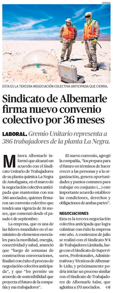 Albemarle culmina con éxito negociación colectiva anticipada con Sindicato Unitario de Trabajadores - (reporteminero)