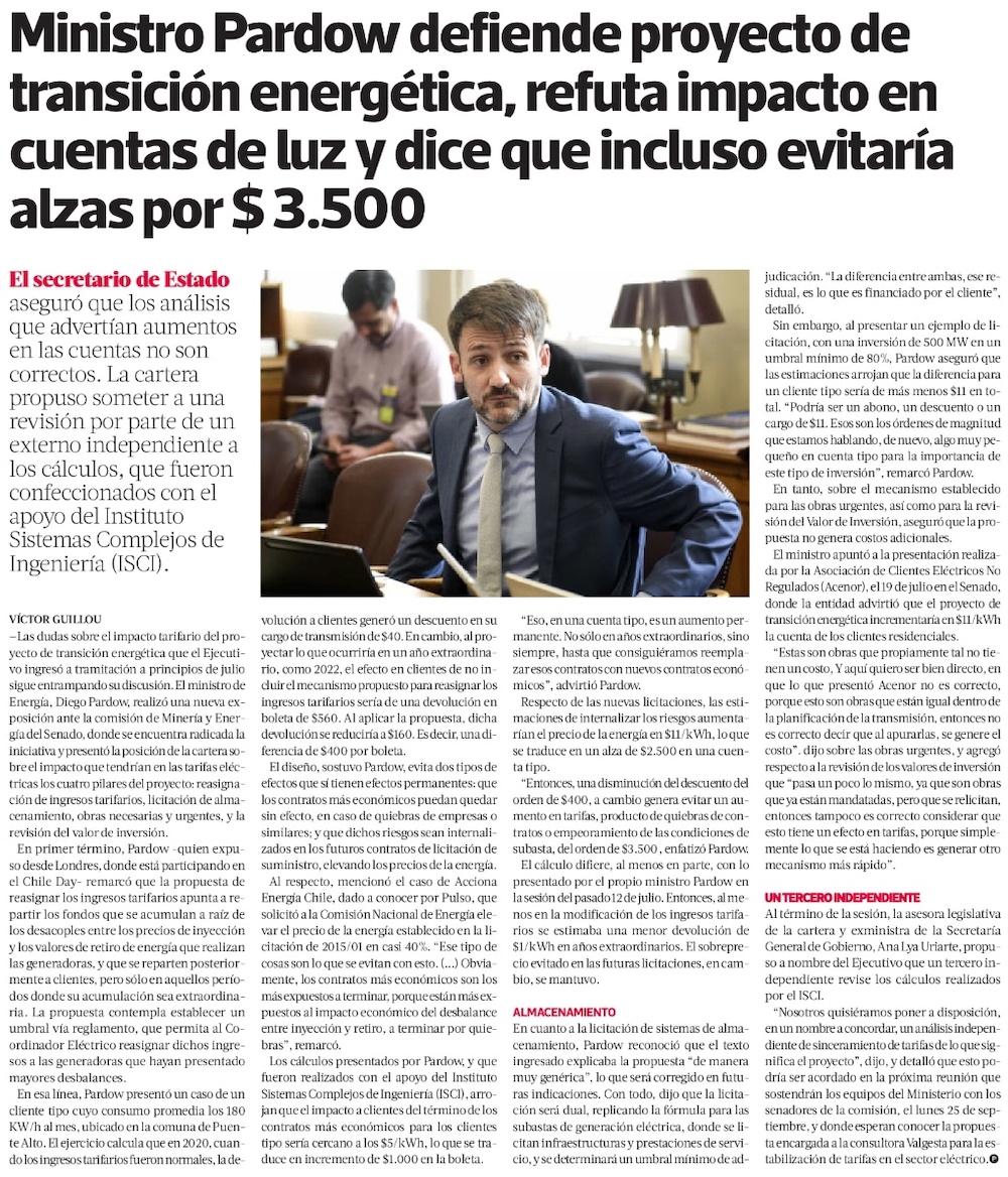 Gobierno propone encargar a un independiente la revisión de impactos del proyecto de transición energética - (Diario Financiero)