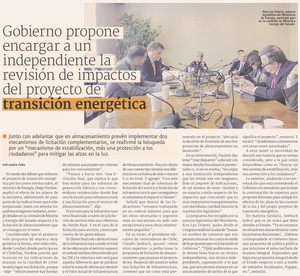 Gobierno defiende proyecto de transición energética en el Senado - (El Mercurio de Santiago)