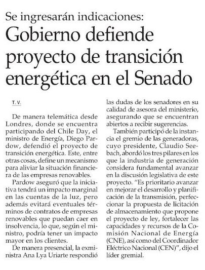 Gobierno propone encargar a un independiente la revisión de impactos del proyecto de transición energética - (Diario Financiero)