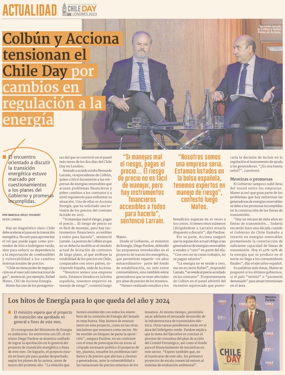 El esperado frente a frente entre Colbún, Acciona y el ministro Pardow en el Chile Day - (Pulso)