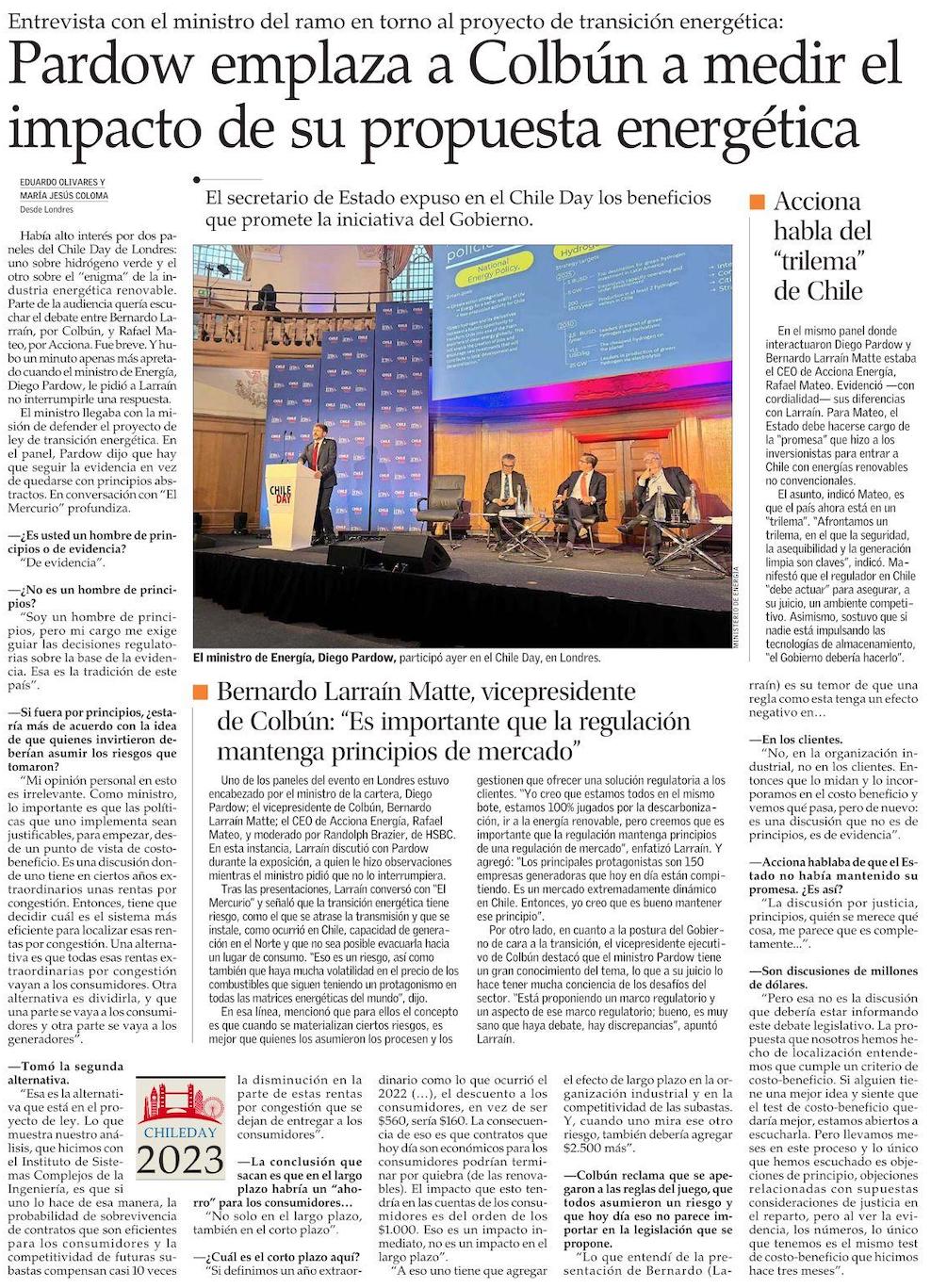 El esperado frente a frente entre Colbún, Acciona y el ministro Pardow en el Chile Day - (Pulso)