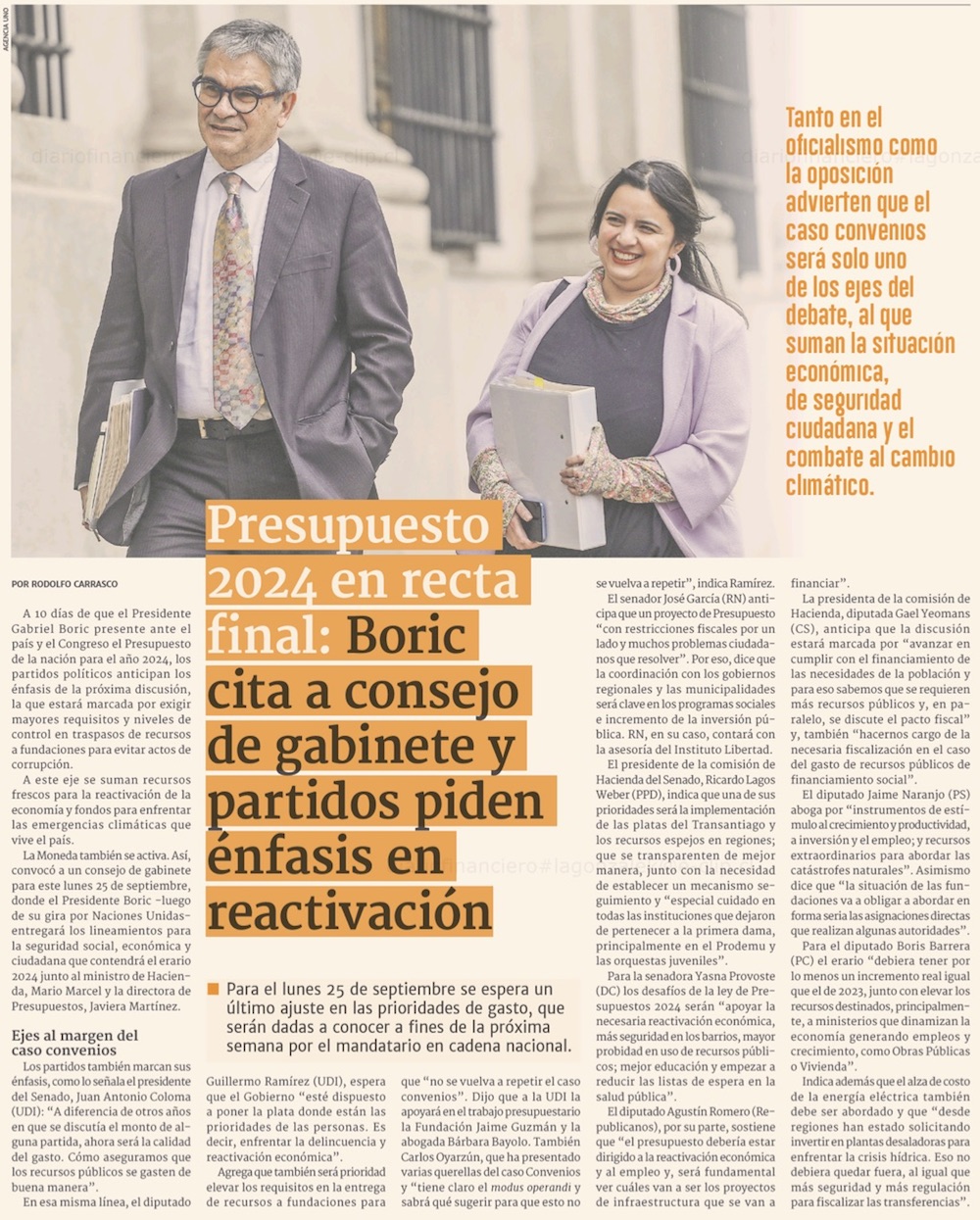 Presupuesto 2024: Marcel anticipa cambios en norma que regula transferencias - (El Mercurio de Santiago)