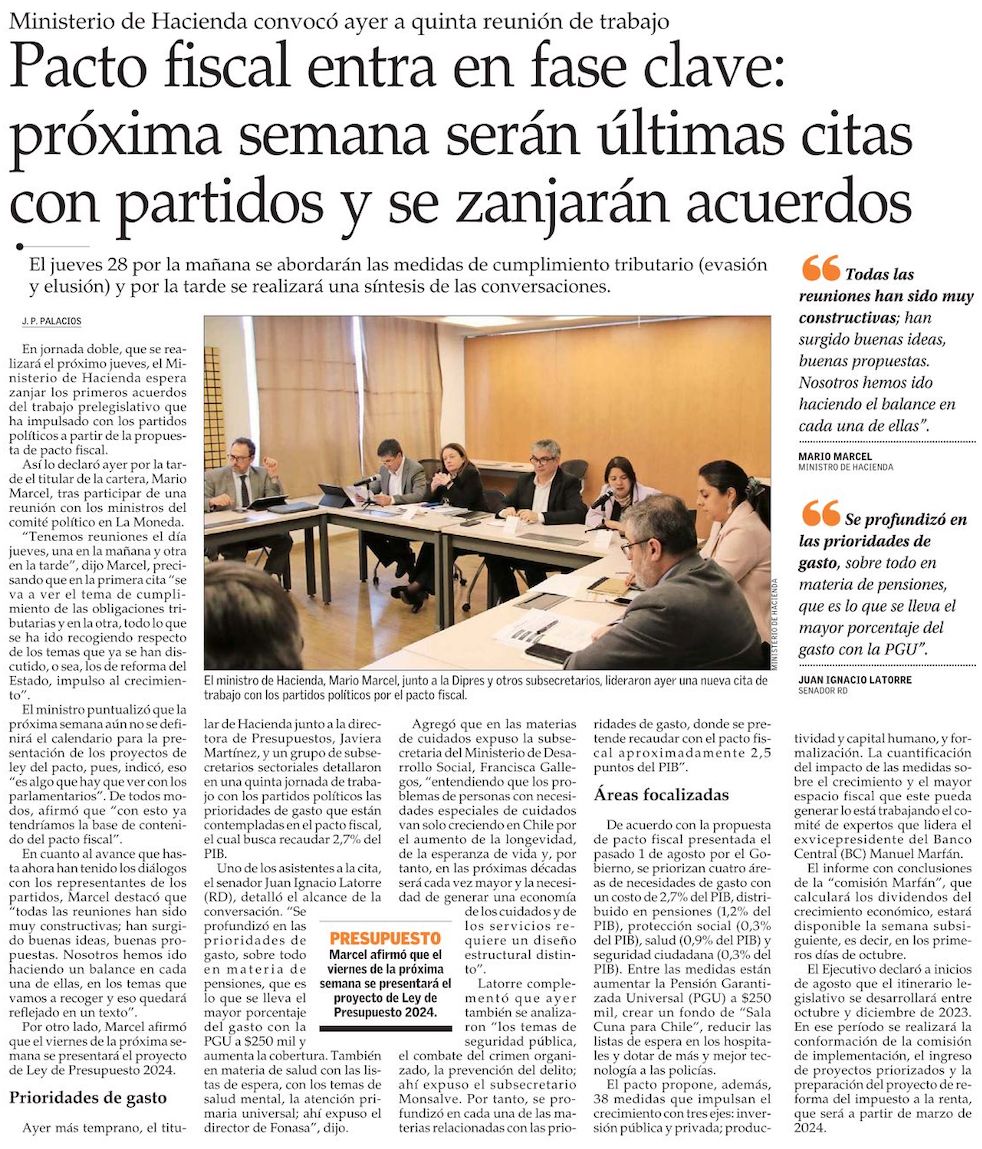 Pacto fiscal: Hacienda fija para el próximo jueves reunión para entregar ejes en donde hubo acuerdo con partidos políticos - (Pulso)