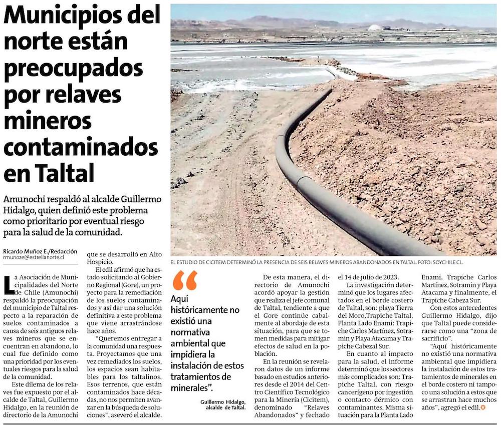 Amunochi respalda gestión de Taltal para remediación de suelos contaminados por relaves - (El Mercurio de Antofagasta)