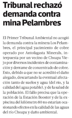 Tribunal Ambiental rechazó demanda por daño ambiental en contra de minera Los Pelambres - (Pulso Online)