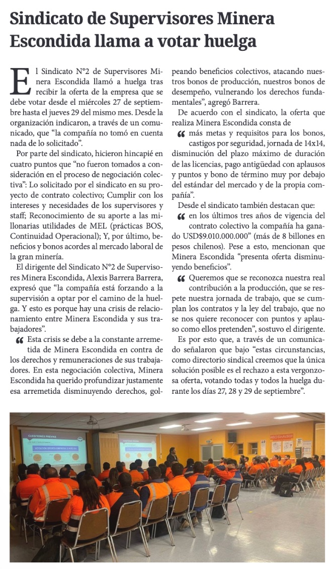 Trabajadores de Minera Escondida comienzan a votar posible huelga legal - (puranoticia.pnt.cl)