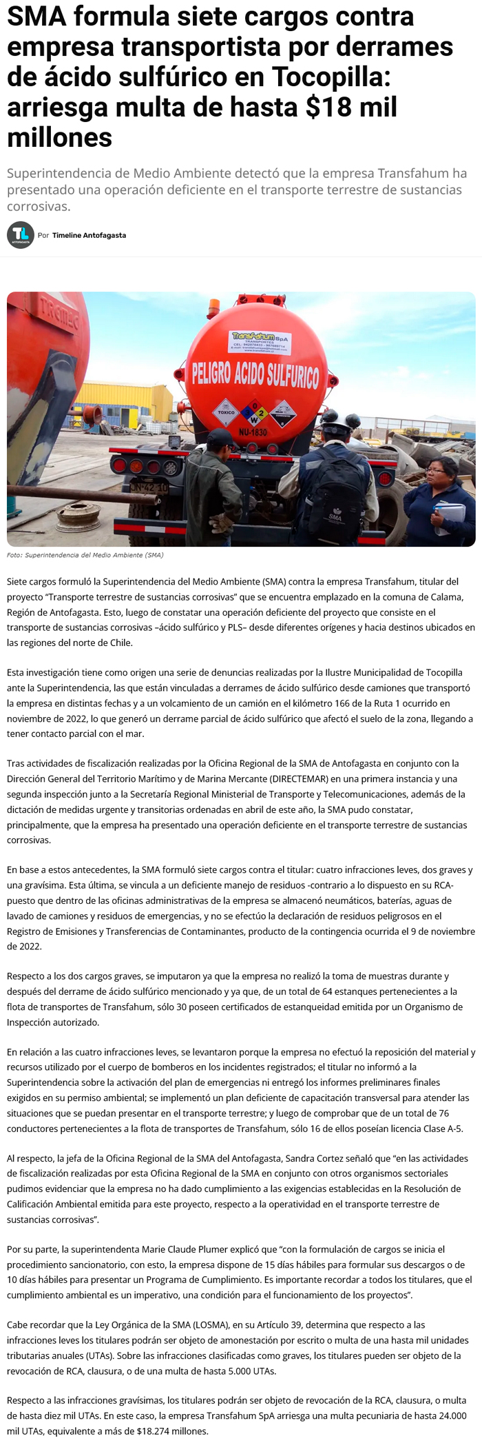 Sancionan a empresa por constantes incidentes con sustancias peligrosas - (Estrella de Antofagasta)