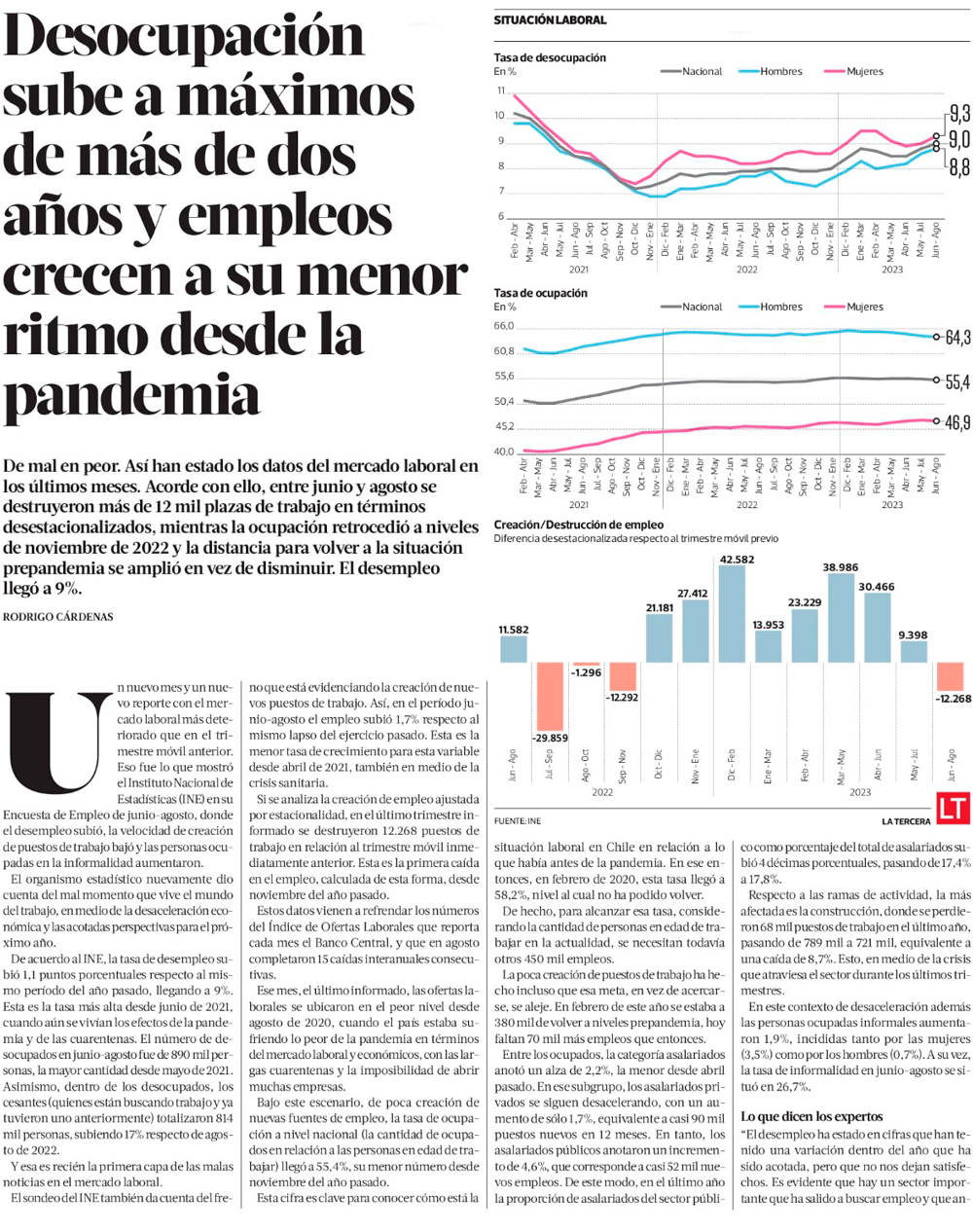 El mercado laboral en crisis: tasa de desempleo sube a 9%, el mayor nivel desde el último lapso de la pandemia - (El Mercurio de Santiago)