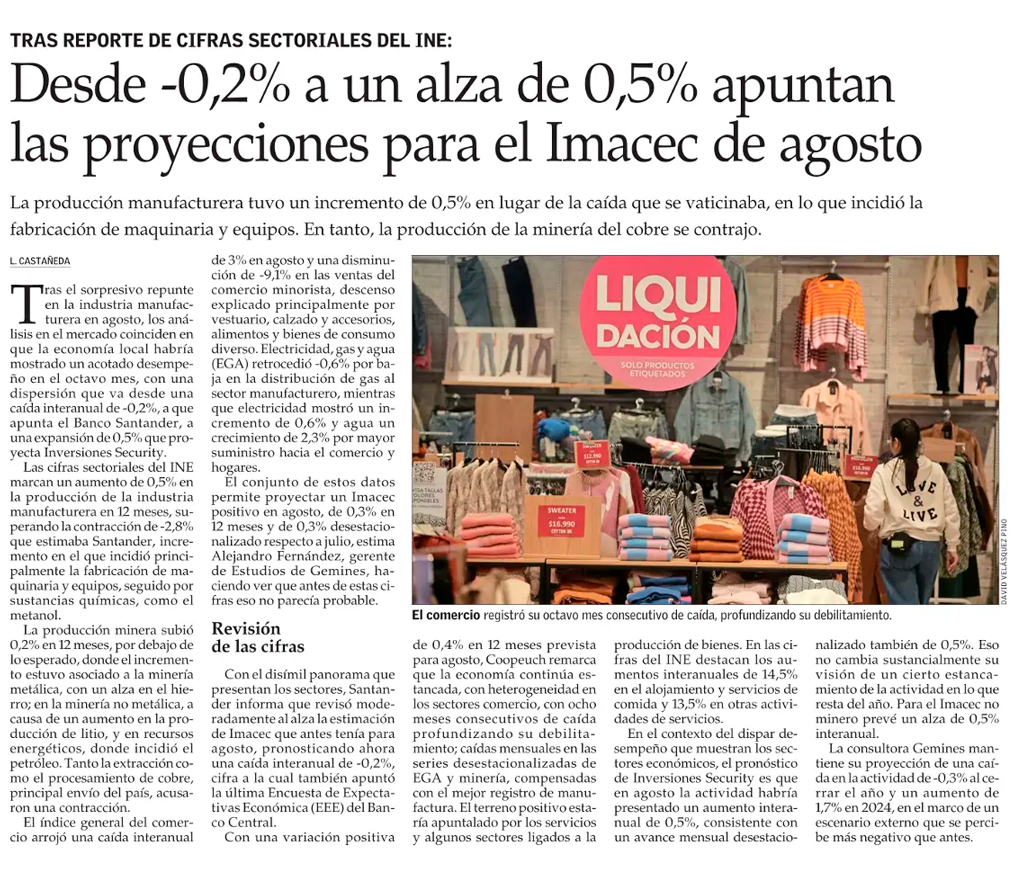 Imacec de agosto anotaría alza de entre 0,3% y 0,5% - (Pulso)