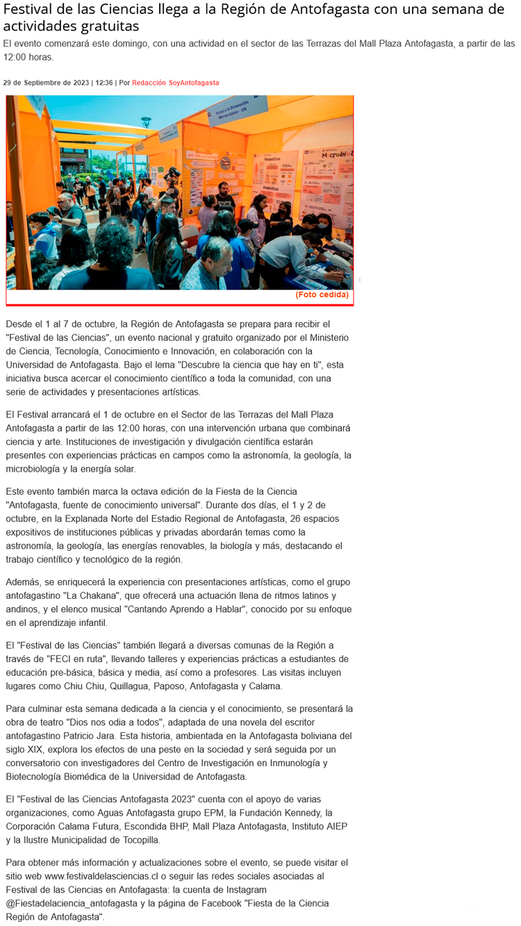 Se viene el Festival de las Ciencias en la Región de Antofagasta - (regionesnoticias.cl)