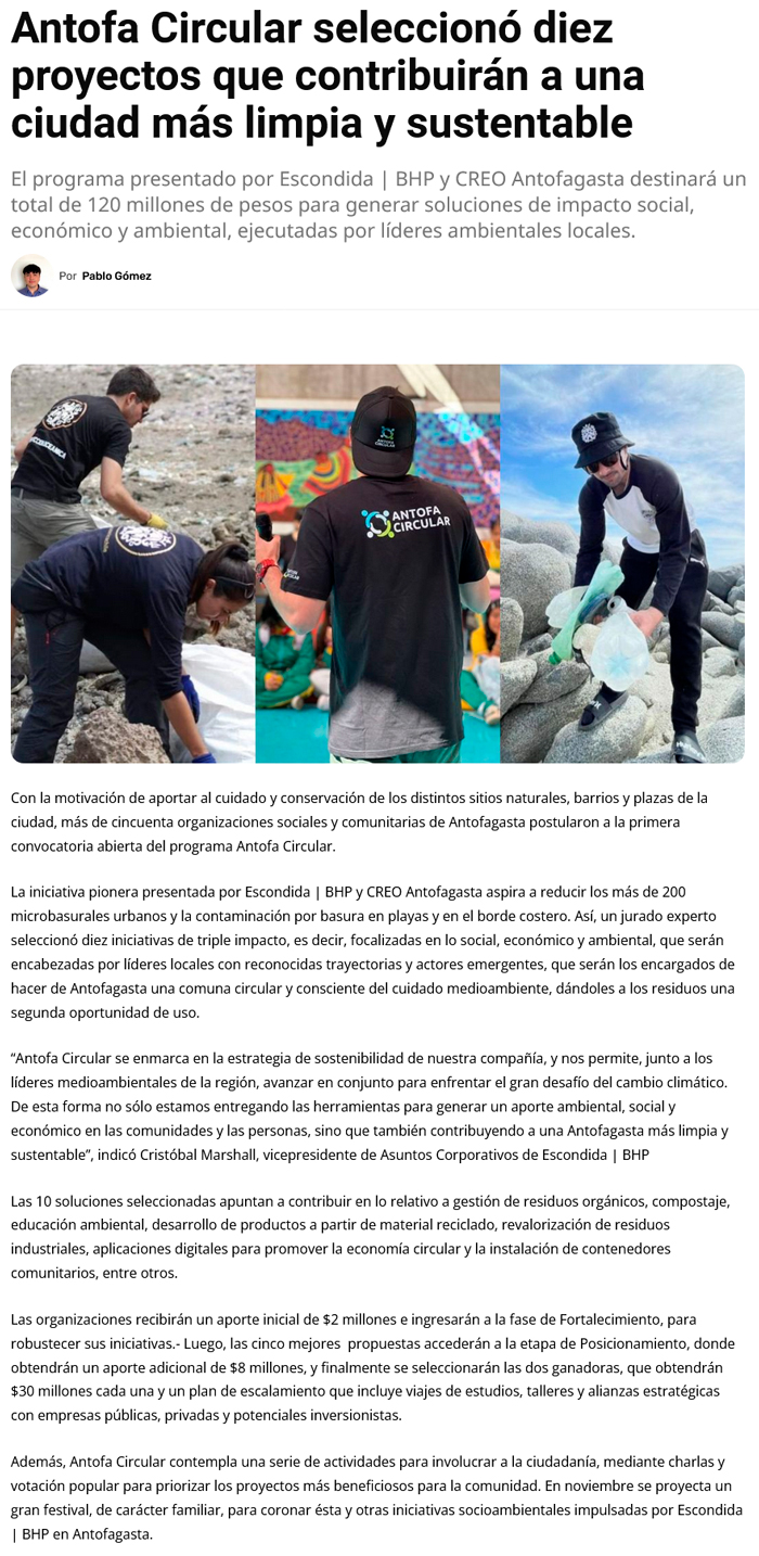 Antofa Circular seleccionó diez proyectos que contribuirán a una ciudad más limpia y sustentable - (madero.cl)