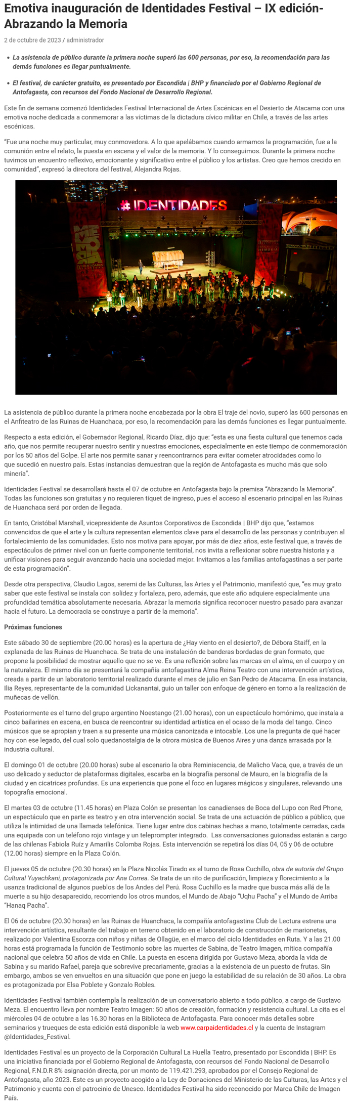 Emotiva inauguración de Identidades Festival – IX edición- Abrazando la Memoria - (fmplus.cl)
