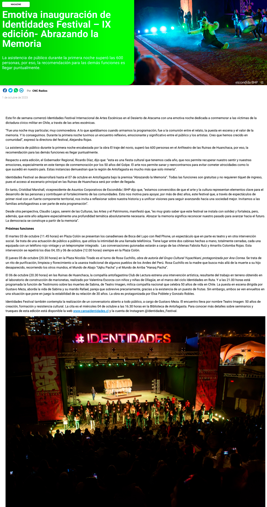 Emotiva inauguración de Identidades Festival – IX edición- Abrazando la Memoria - (fmquiero.cl)