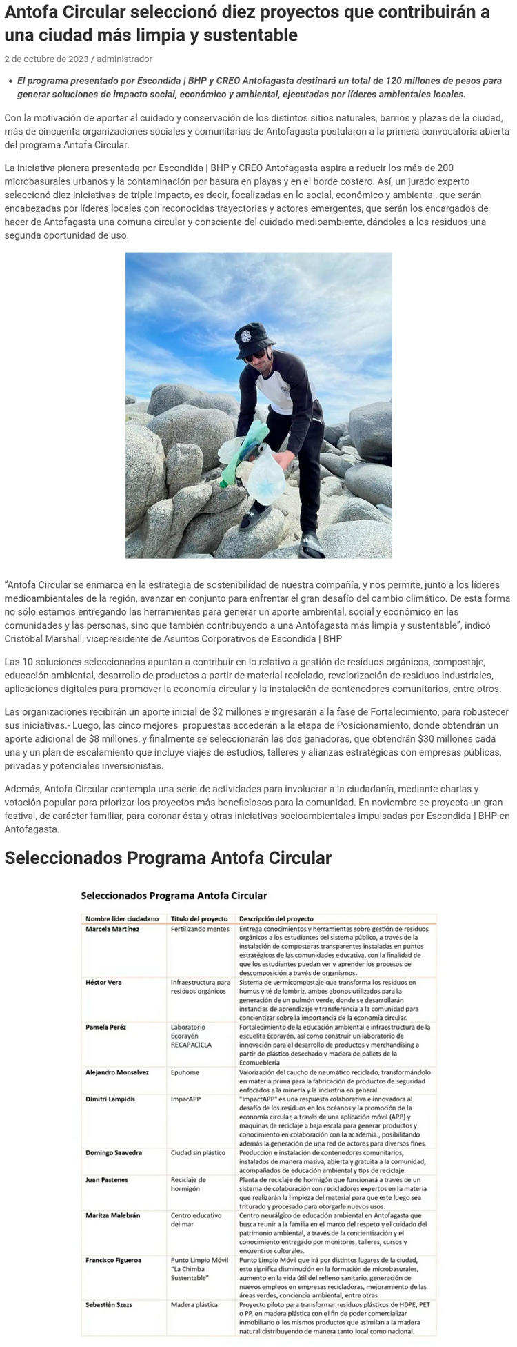 Antofa Circular seleccionó diez proyectos que contribuirán a una ciudad más limpia y sustentable - (madero.cl)