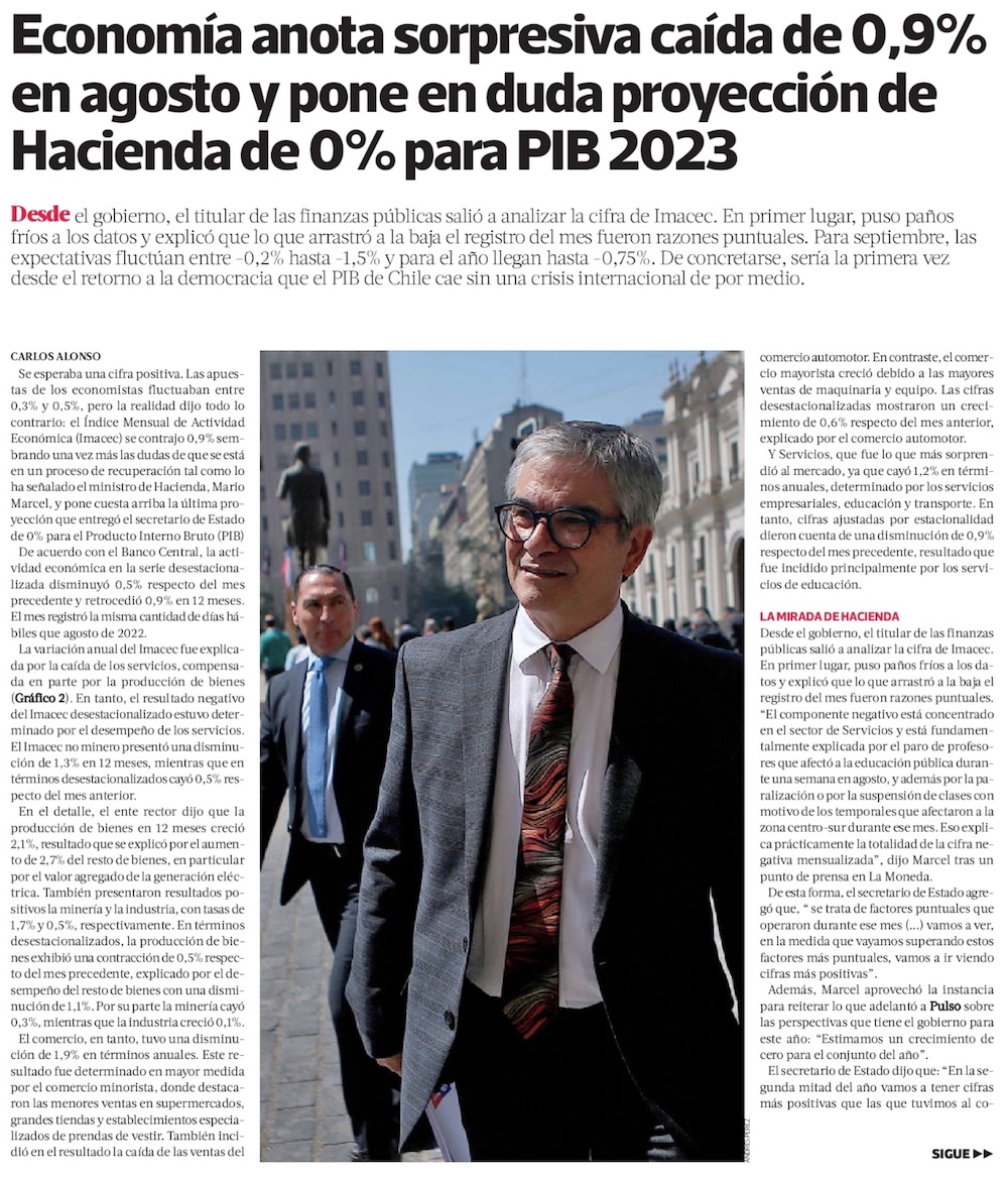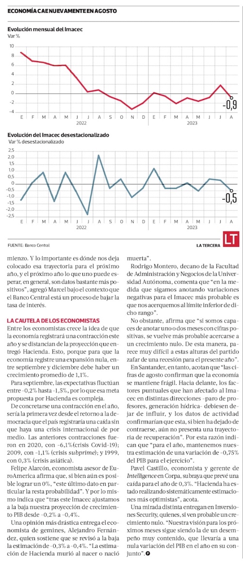 Caída de Imacec en agosto sorprende y abre escenario de una recesión técnica este año - (El Mercurio de Santiago)