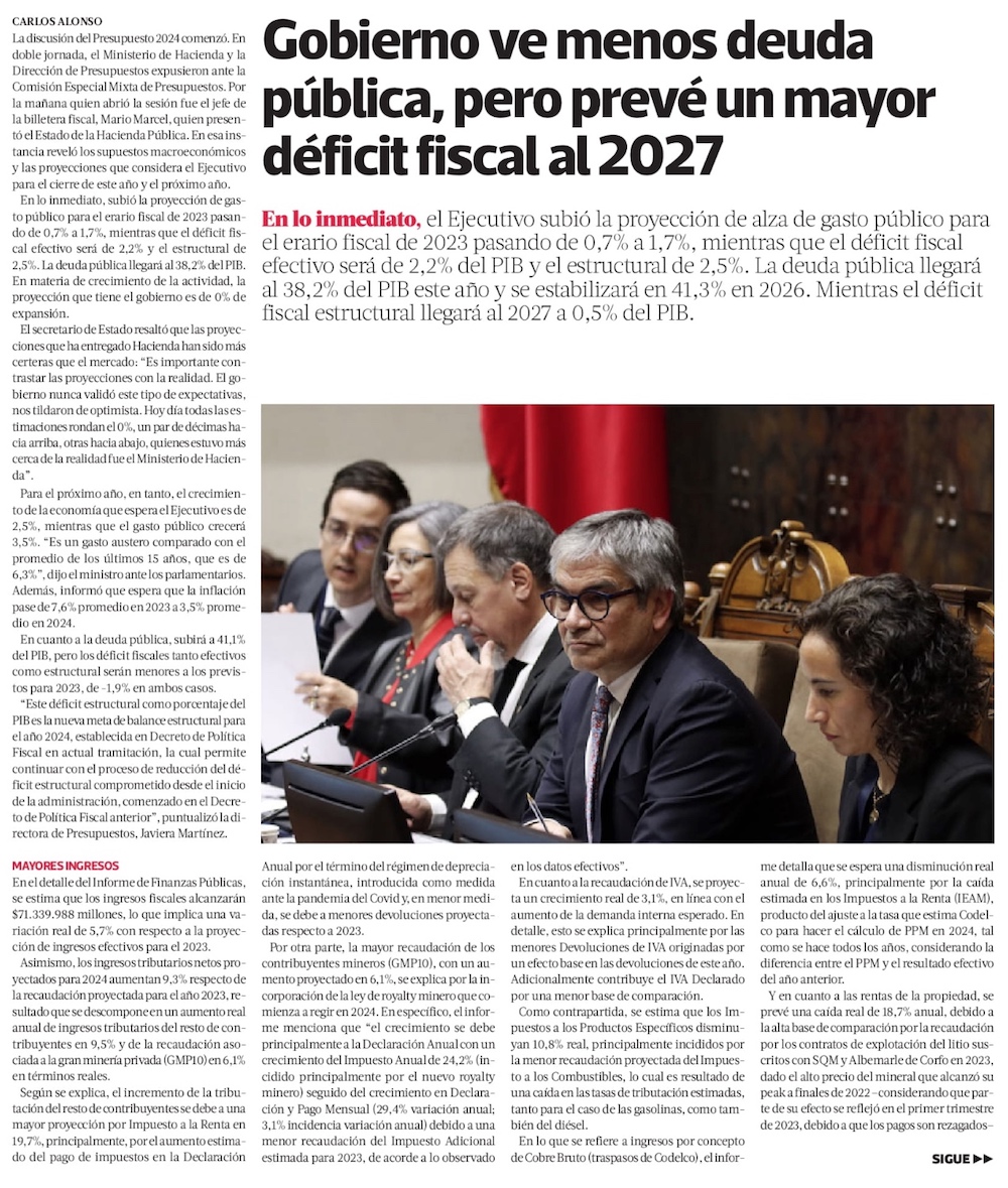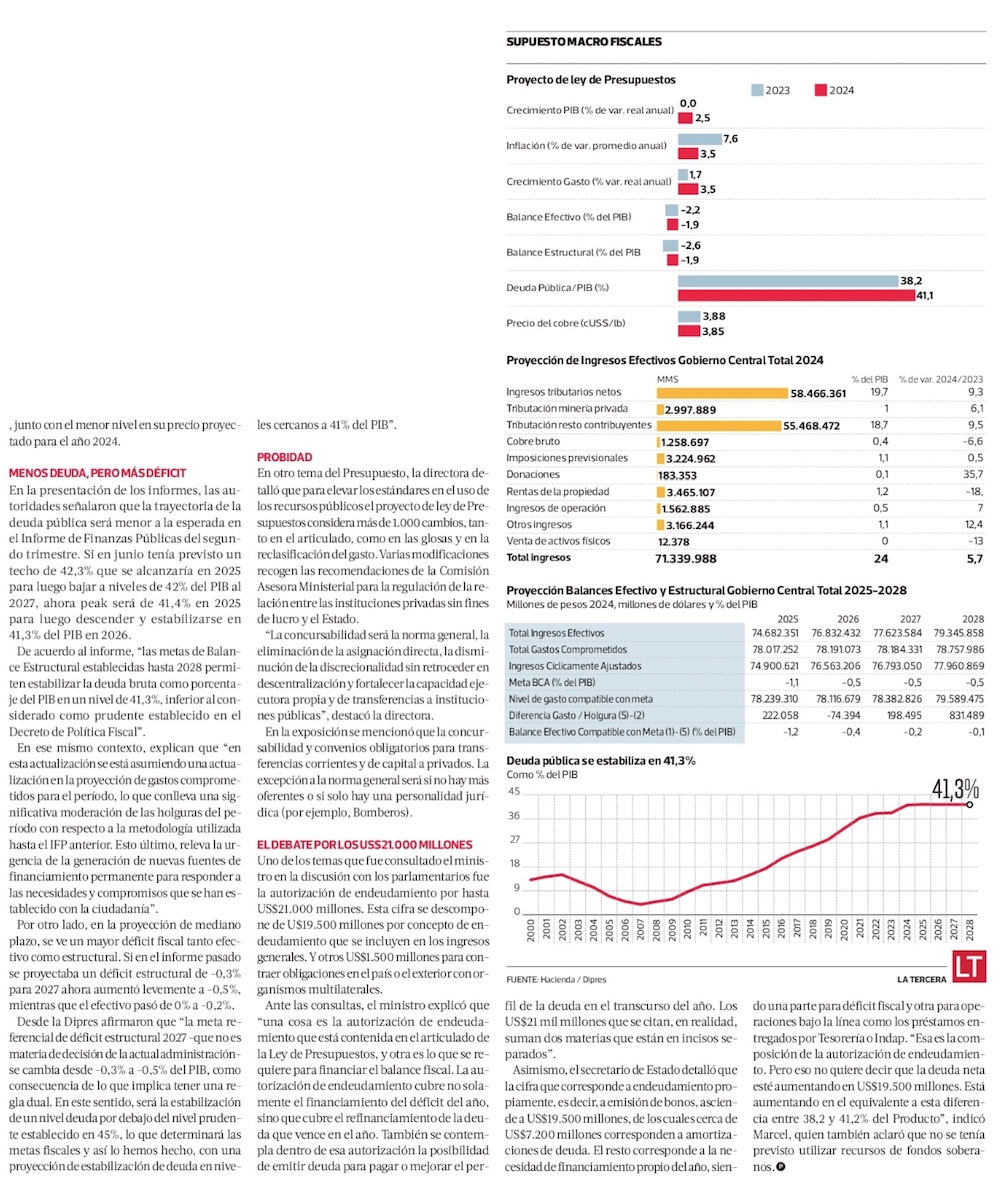 Deuda pública se elevará sobre el 41% del PIB y alcanzará su mayor nivel desde 1990 - (El Mercurio de Santiago)