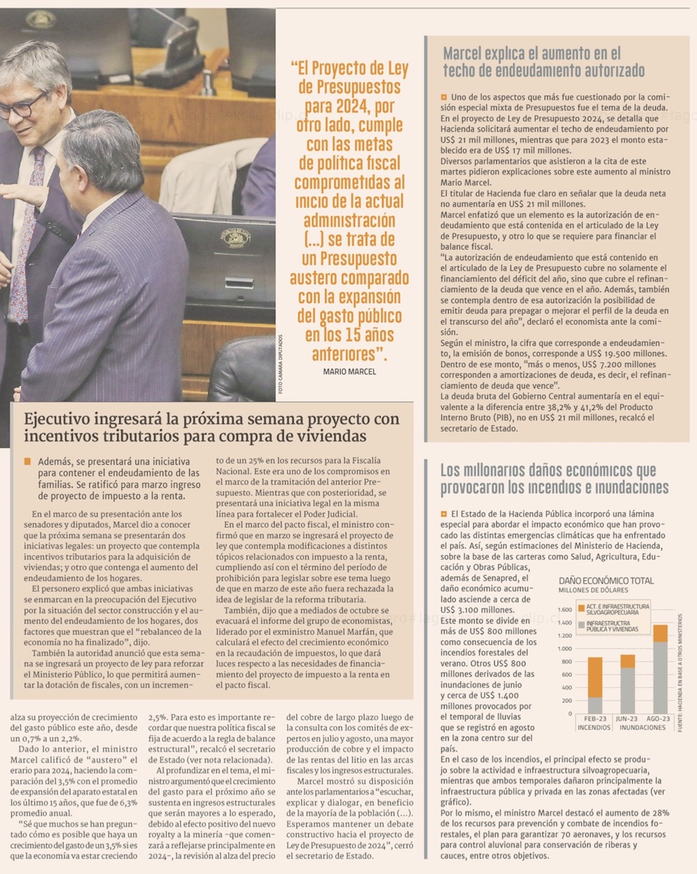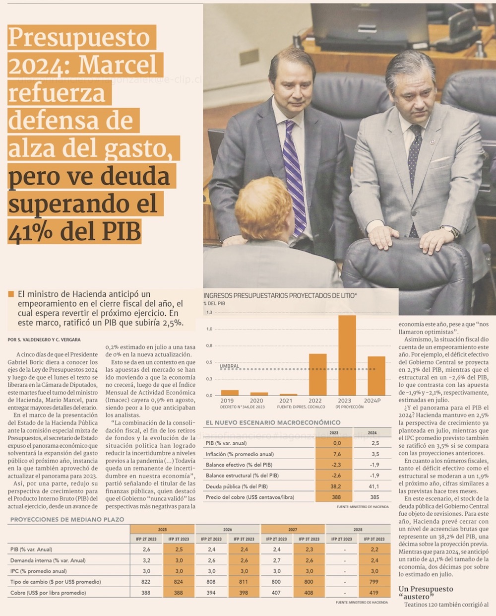 Ministerios de Economía y Transportes lideran alzas en el Presupuesto 2024 - (Pulso)
