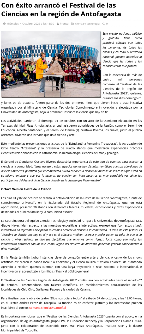 Con éxito arrancó el Festival de las Ciencias en la región de Antofagasta - (regionesnoticias.cl)