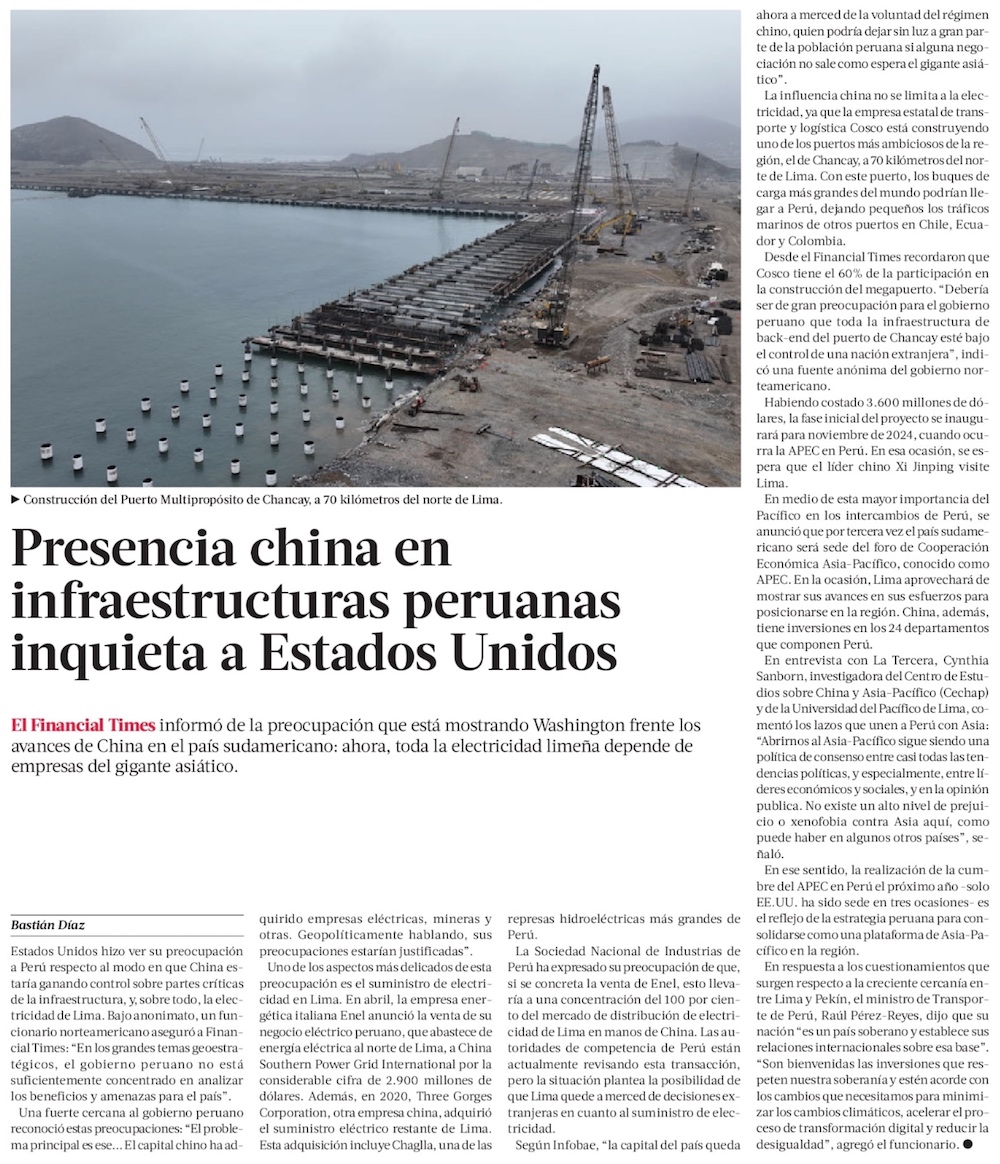 EE.UU. expresa preocupación por escala de inversión china en Perú - (El Mercurio de Santiago)