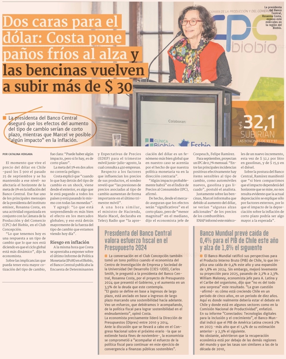 Banco Central: Alza del dólar obedece a factores globales y no está incidiendo en meta de inflación - (El Mercurio de Santiago)