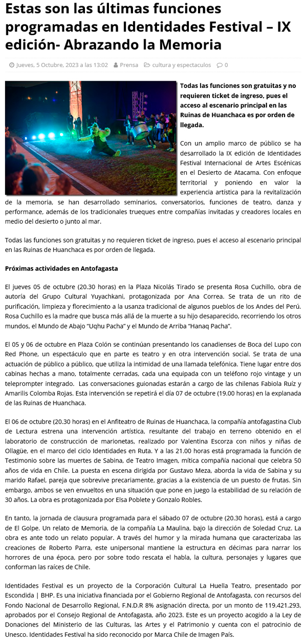 Estas son las últimas funciones programadas en Identidades Festival – IX edición- Abrazando la Memoria - (antofacity.com)