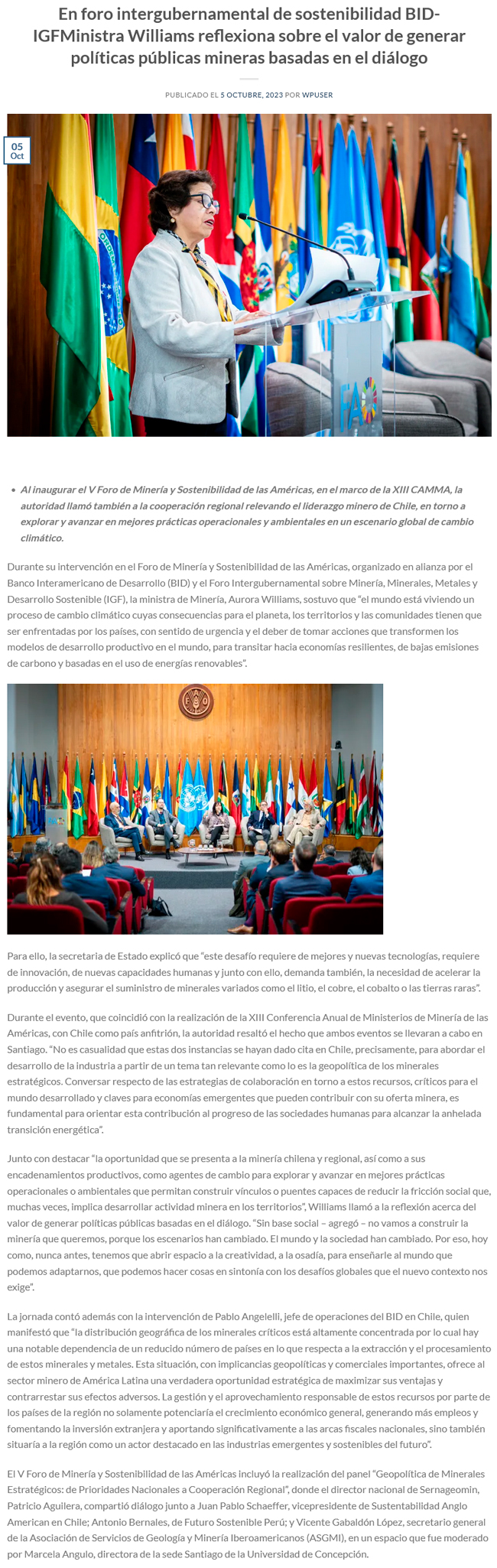 Ministra Williams reflexiona sobre valor de generar políticas públicas mineras basadas en el diálogo - (mch.cl)