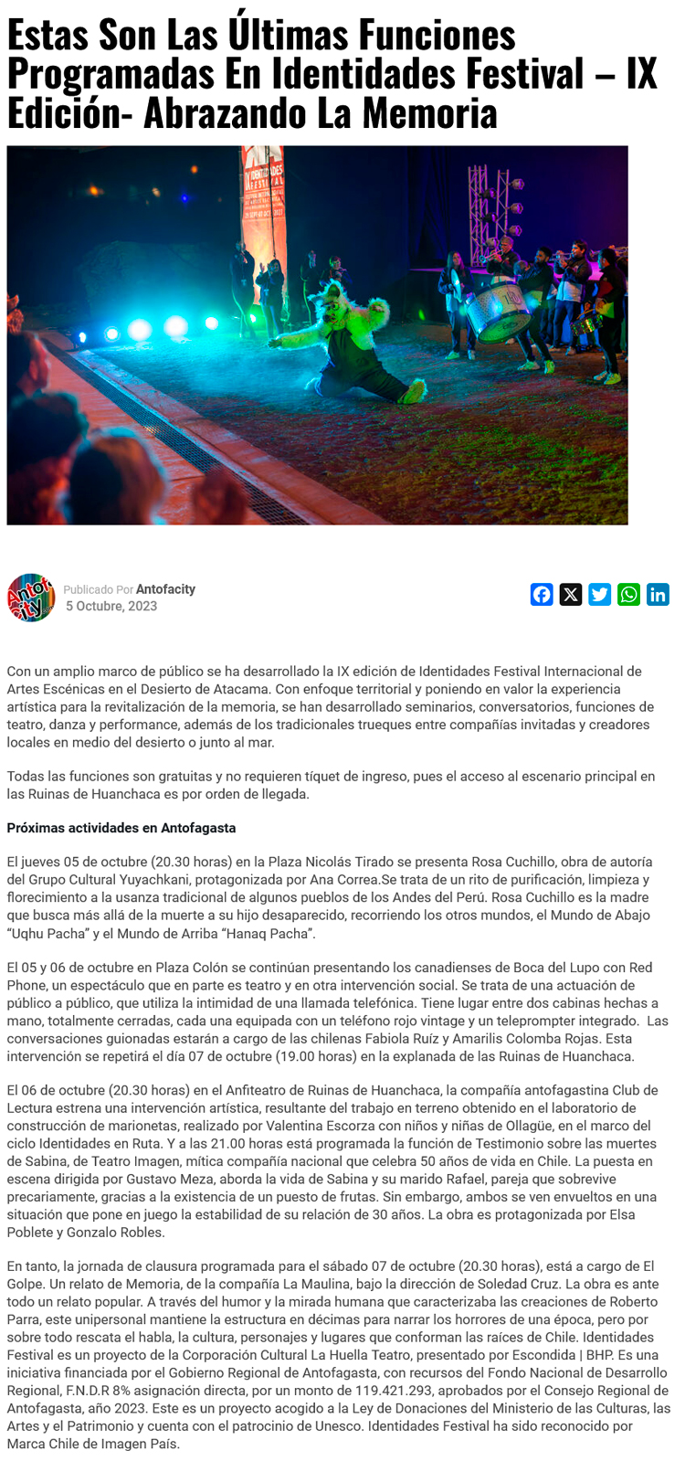 Estas son las últimas funciones programadas en Identidades Festival – IX edición- Abrazando la Memoria - (antofagastanoticias)