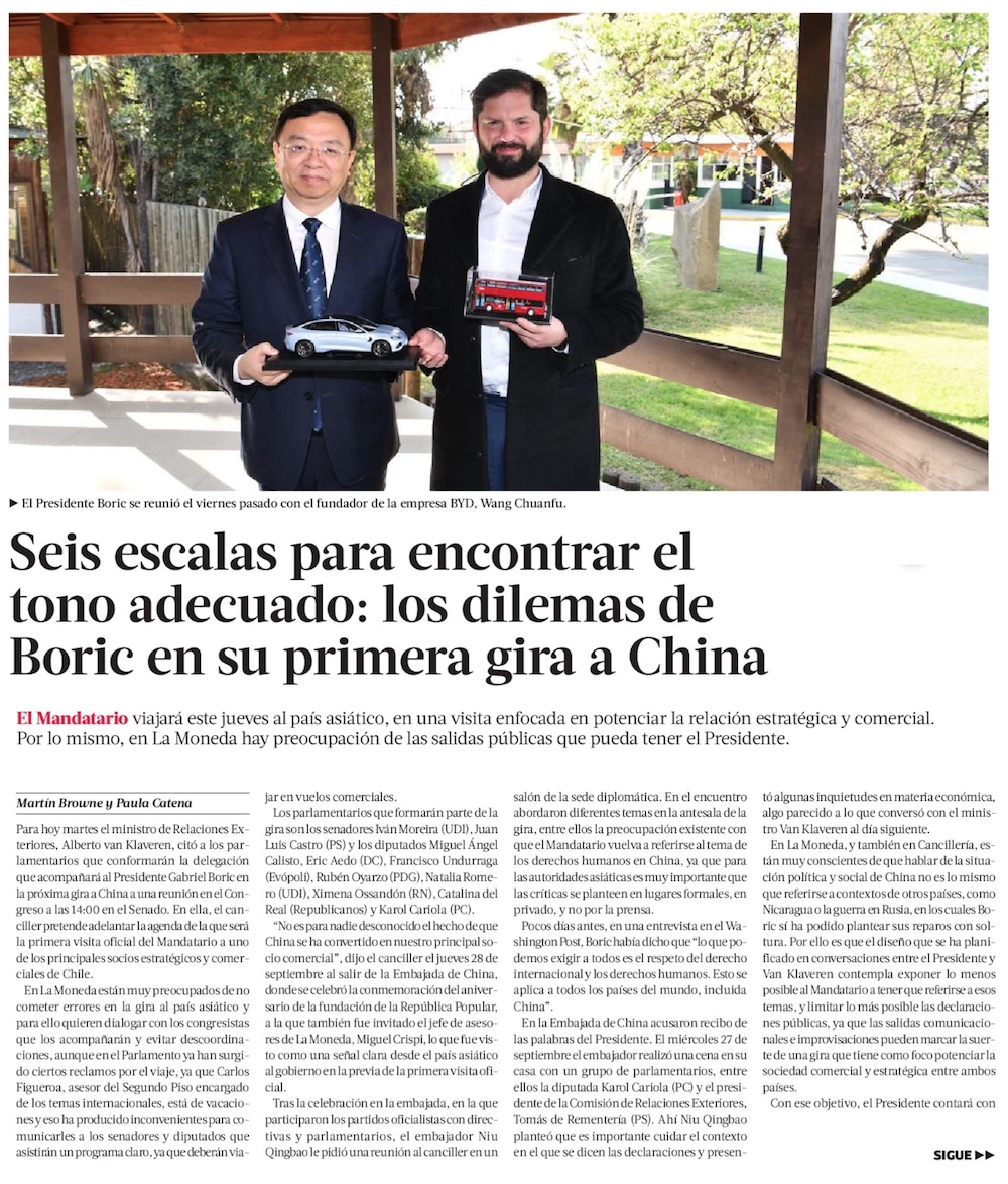 Los temas de interés para China según exembajadores en la previa de gira presidencial - (El Mercurio de Santiago)