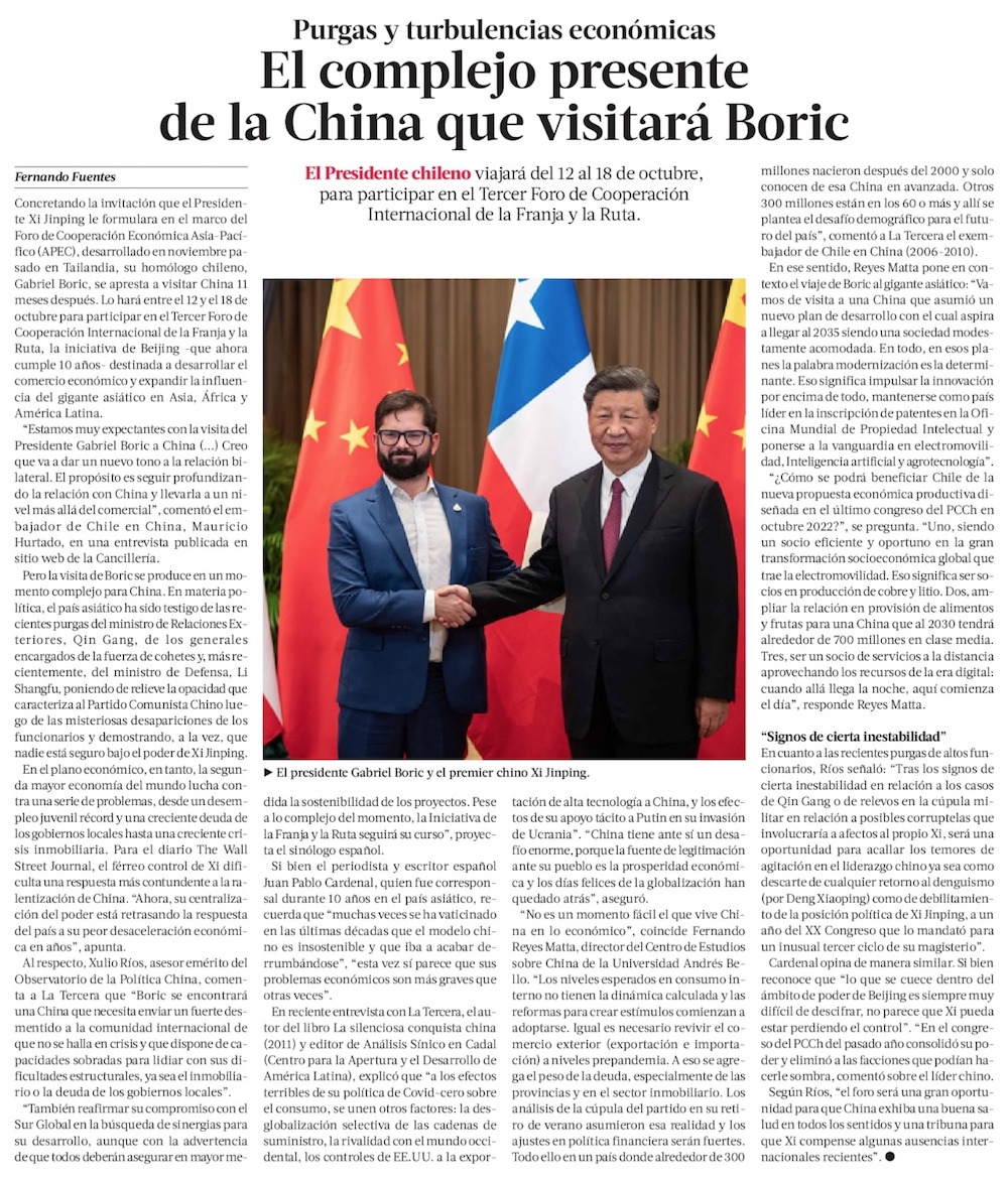 Seis escalas para encontrar el tono adecuado: los dilemas de Boric en su primera gira a China - (La Tercera)