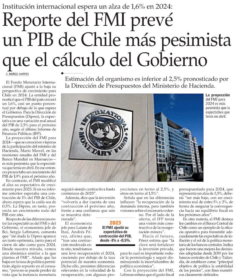 El FMI estima que el PIB per cápita de Chile bordeará los US$30 mil en 2023 - (Pulso)