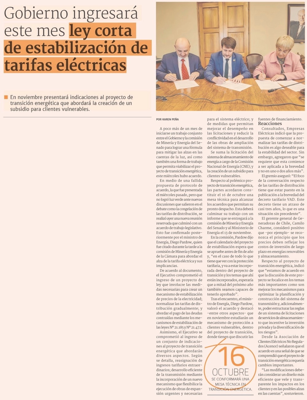 Ejecutivo logra acuerdo con senadores y enviará este mes proyecto para graduar alza de tarifas eléctricas - (Pulso)