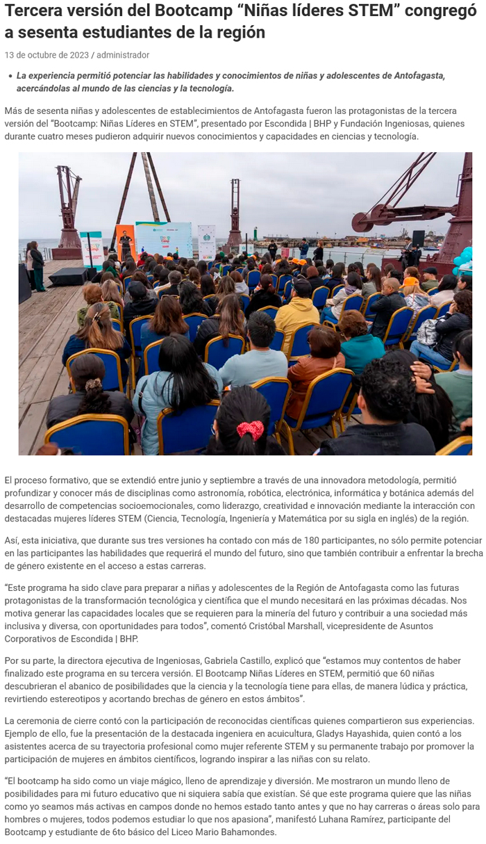 Tercera versión del Bootcamp “Niñas líderes STEM” congregó a sesenta estudiantes de la región - (regionesnoticias.cl)