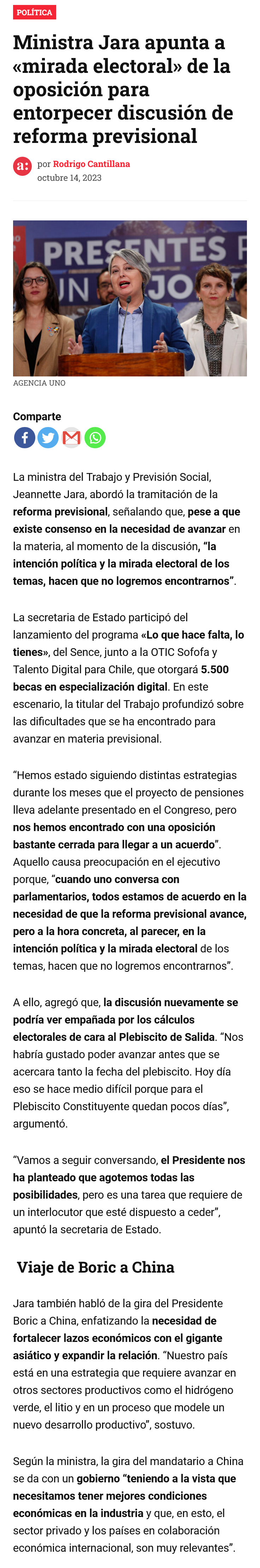 Reforma previsional: Gobierno congela la tramitación del proyecto hasta después del plebiscito constitucional - (Pulso)
