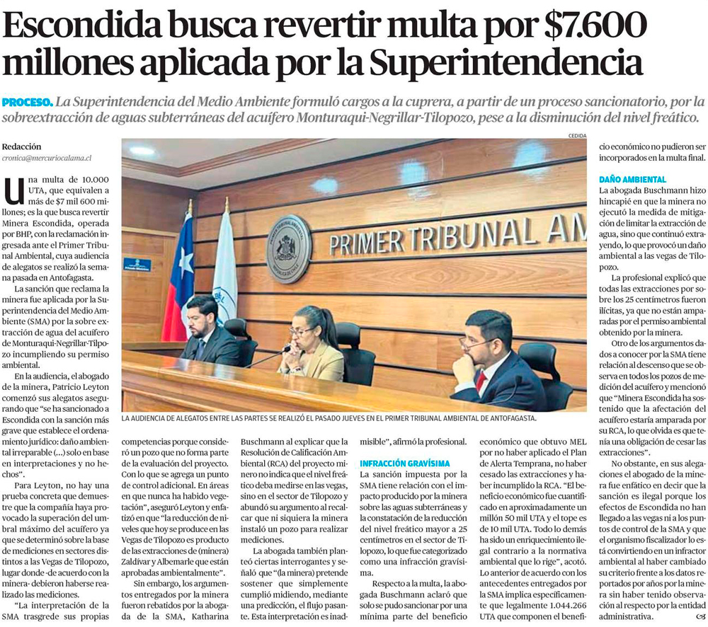 MEL busca revertir millonaria multa aplicada por la SMA - (El Mercurio de Antofagasta)