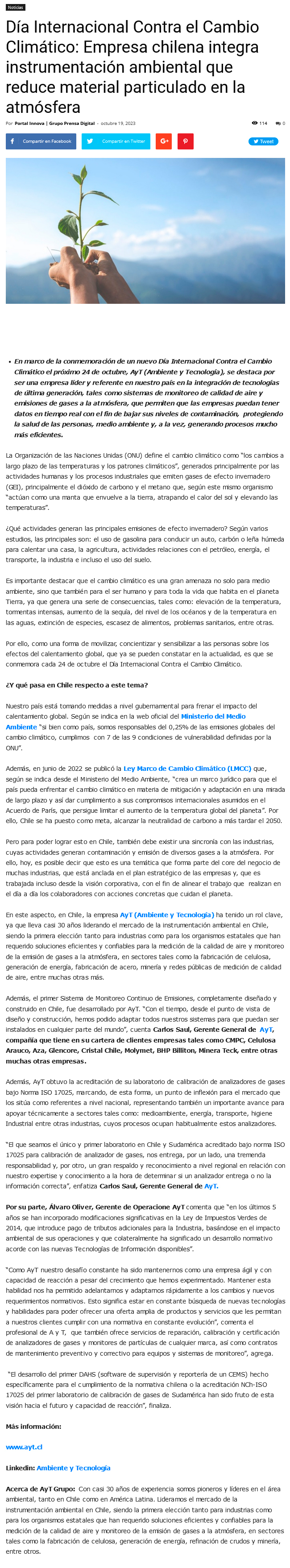 Empresa chilena integra instrumentación ambiental que reduce material particulado en la atmósfera - (presslatam.cl)