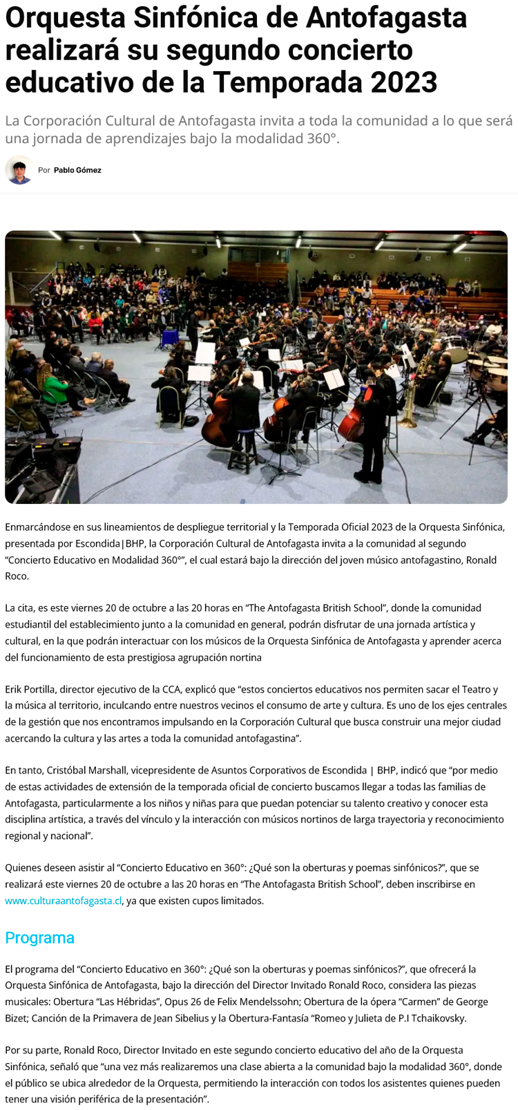 Orquesta Sinfónica de Antofagasta realizará su segundo concierto educativo de la Temporada 2023 - (anfagasta.tv)